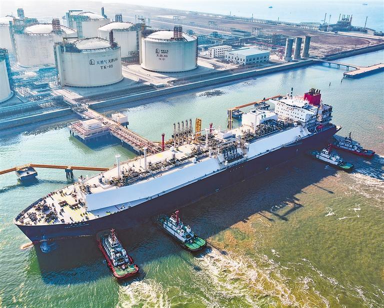 日前,满载约7万吨液化天然气的“中能福石”号LNG运输船平稳靠泊中国石化天津LNG接收站。据介绍,该船满载量可满足约470万户家庭一个月的用气需求。