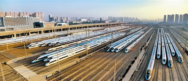 图为2月1日国铁西安局西安动车段动车库内高铁动车组整齐列阵,静候待发。张 文摄 (新华社发)