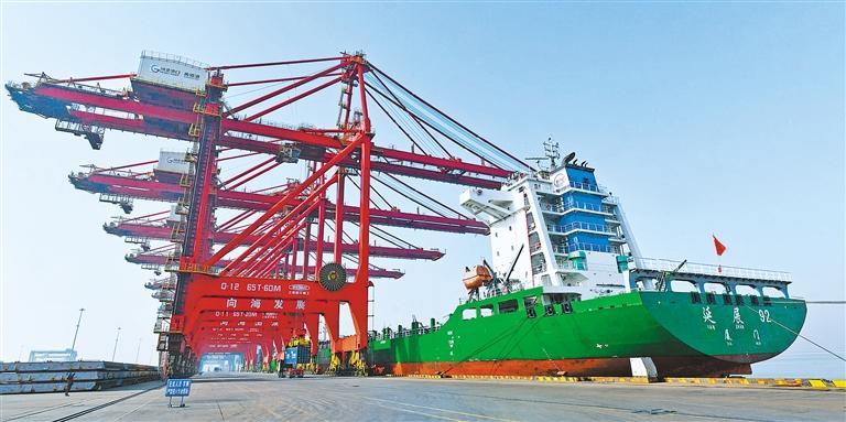 1月15日,一艘货轮靠泊在河北省黄骅港综合港区集装箱码头。据沧州港务集团数据,黄骅港2025年货物吞吐量达3.66亿吨,同比增长3.08%,创历史新高。苑立伟摄(新华社发)
