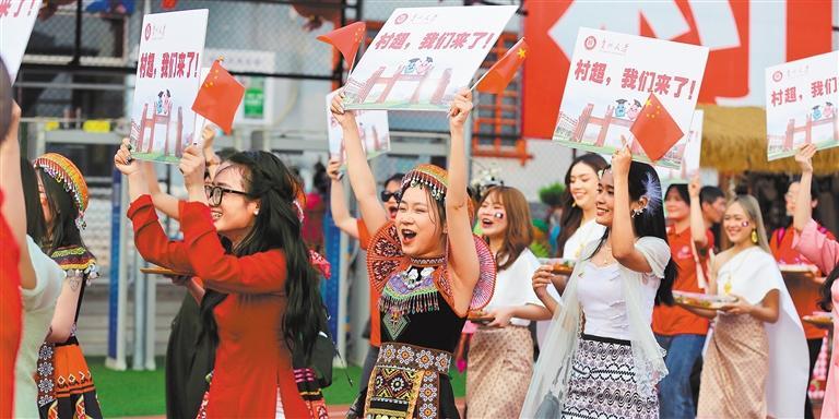 2024年4月13日,黔东南州榕江县村超赛场,贵州大学拉拉队入场。从2023年的20支参赛队伍到2026年的137支,“村超”参赛球队不断扩容,影响力日益增强。