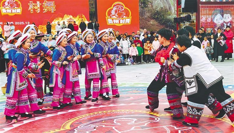 作为贵州“村”字号IP家族的新成员,2025年12月27日,贵州“村舞”在黔西南州晴隆县阿妹戚托小镇启幕。来自晴隆各乡镇的舞蹈队伍轮番上阵,演绎了地牯牛舞、苗族芦笙舞、板凳舞等极富民族特色与地域风情的传统舞蹈。舞者们步伐铿锵有力,节奏欢腾激昂,生动展现了黔西南各民族深厚的历史文化底蕴和奋发向上的时代精神风貌。