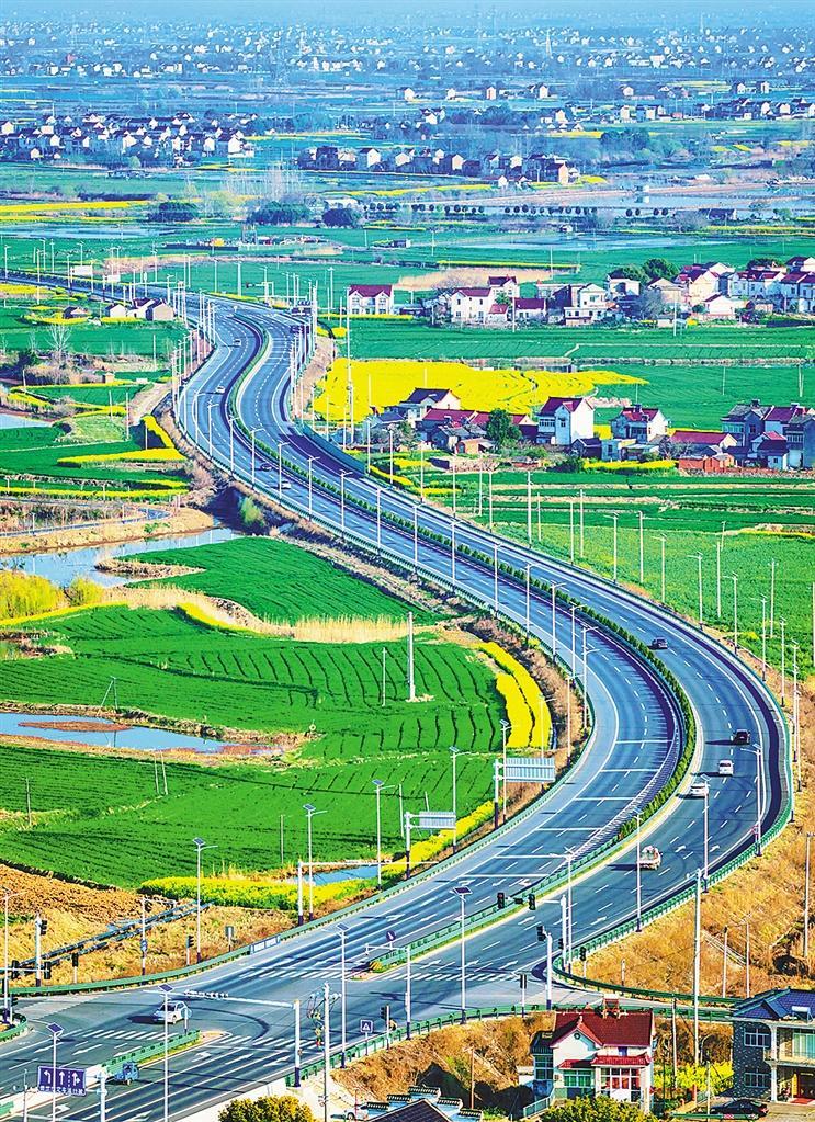 3月14日,安徽省马鞍山市当涂县,蜿蜒的道路穿过村庄与麦田。近年来,当地加强交通基础设施建设,助力区域经济发展。张明伟摄(中经视觉)