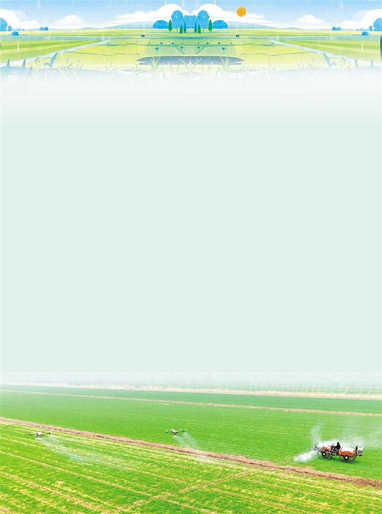 3月11日,江苏省宿迁市泗洪县大楼街道花庄社区高标准农田,种植户使用无人机和自走式高地隙喷杆喷雾机为小麦进行除草作业。张同远摄(中经视觉)