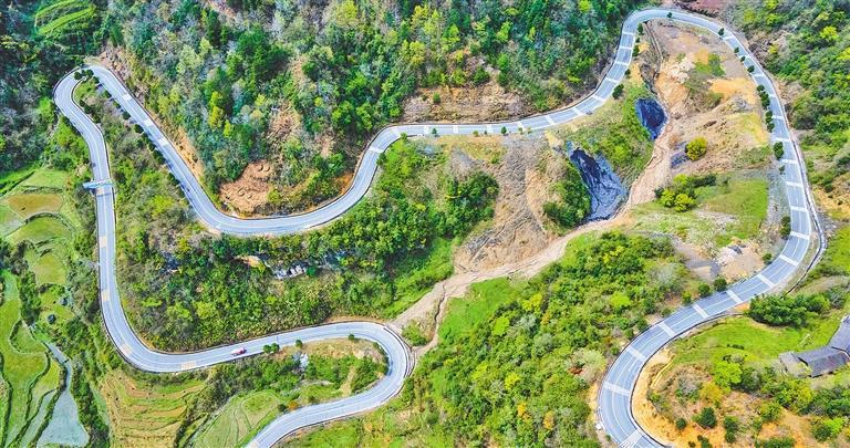 近年来,贵州省黔东南苗族侗族自治州岑巩县加大基础设施建设力度,坚持把“四好农村路”建设与发展地方特色农业、乡村旅游产业等紧密结合,努力实现公路畅、产业兴,助力当地乡村全面振兴。图为岑巩县客楼镇公路一段。